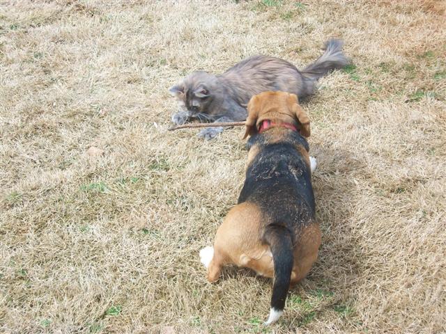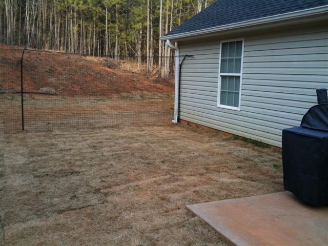 The last step in putting up the Purr…fect Fence is staking the chew guard to the ground. They provide you with plenty of high quality stakes for this job. You are suppose to put one stake every 2 feet and alternate between the front and back of the chew guard. I would rather pull 1000 more zip ties than drive these stakes into the ground. For the most part our yard is just Georgia clay but every once and while I would hit a rock that would not budge. It was quite a pain the butt and I was very glad to be finished.