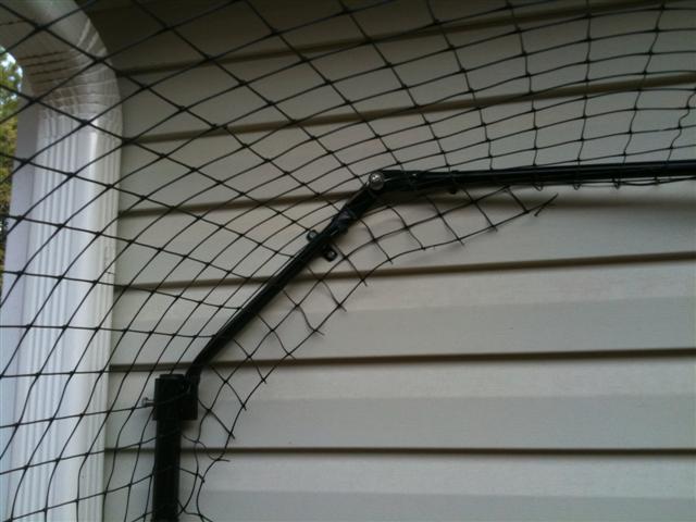 I did not document putting the fence up the way I wanted to. But it is actually pretty easy. There are several components to the free standing kit. The first thing I did was measure, measure, and measure again. You are suppose to put the poles at a maximum of 14 feet apart. Butted up against the house, we were able to get a 40′ x 28′ area for the cats to call their own.